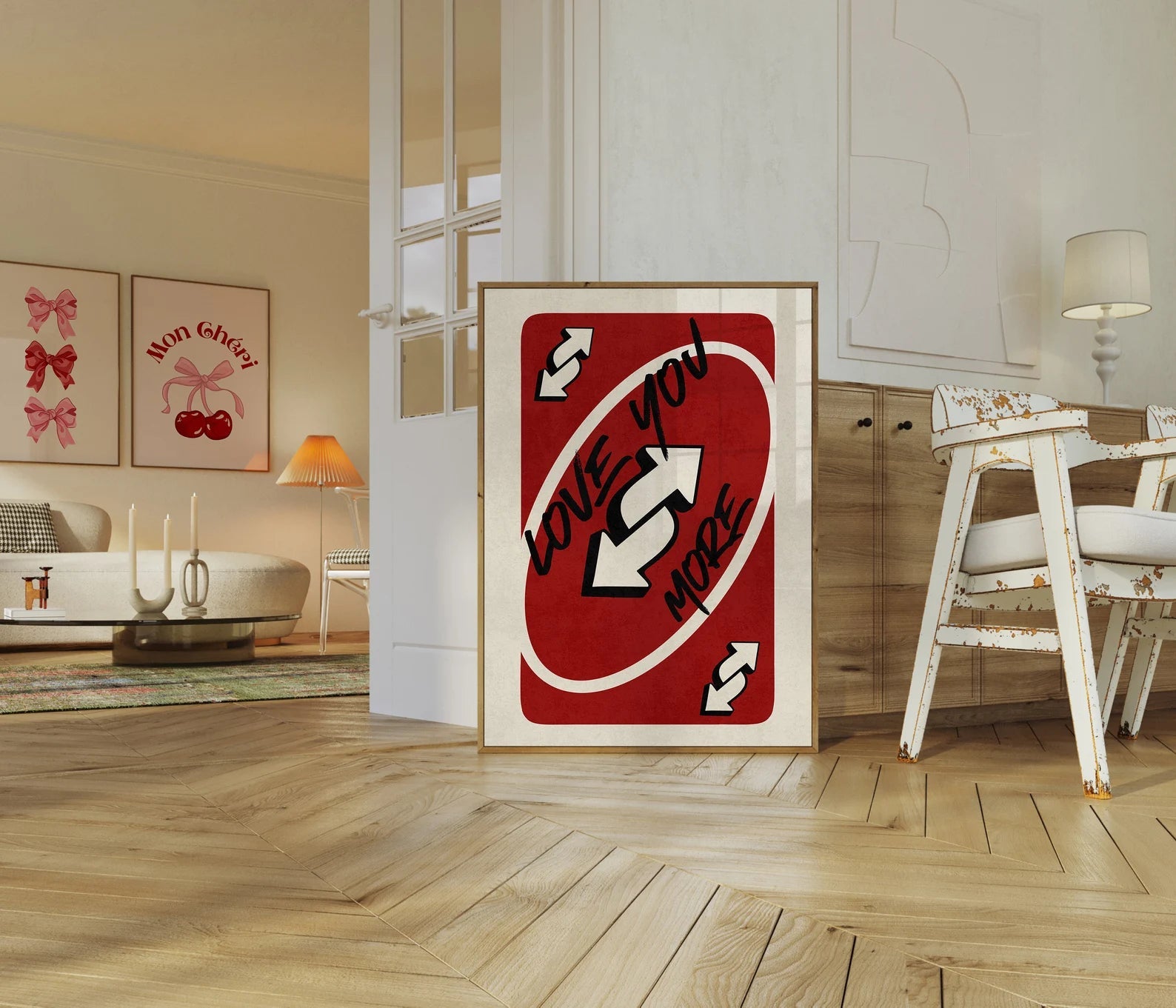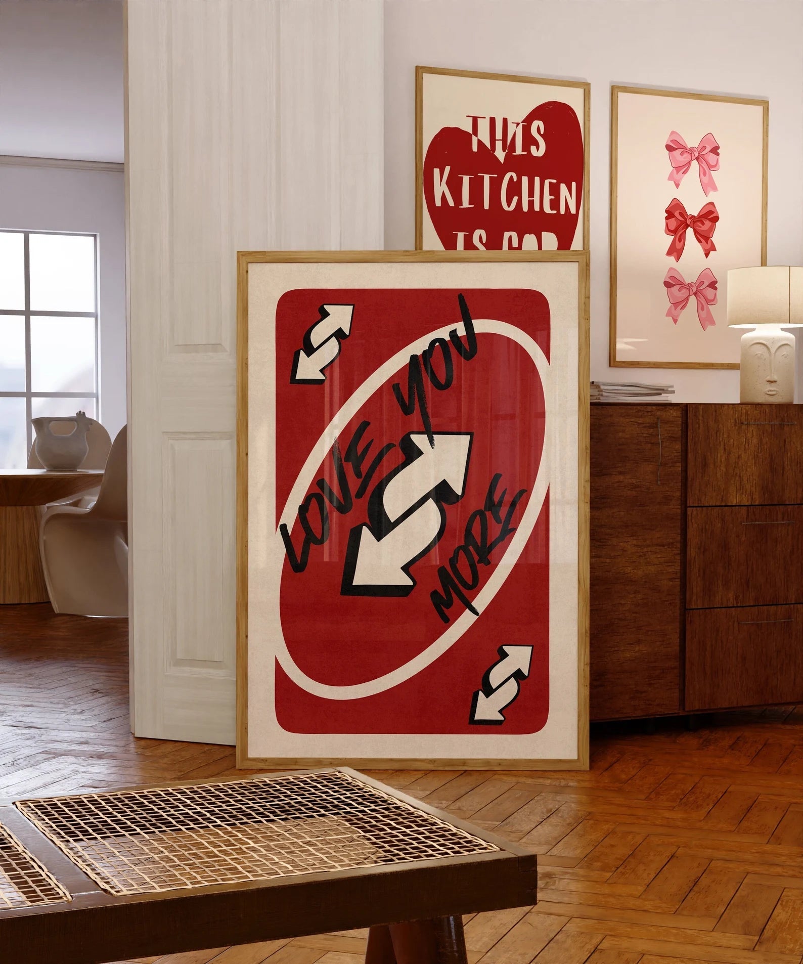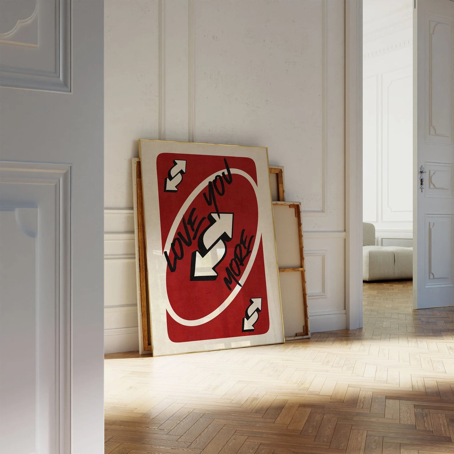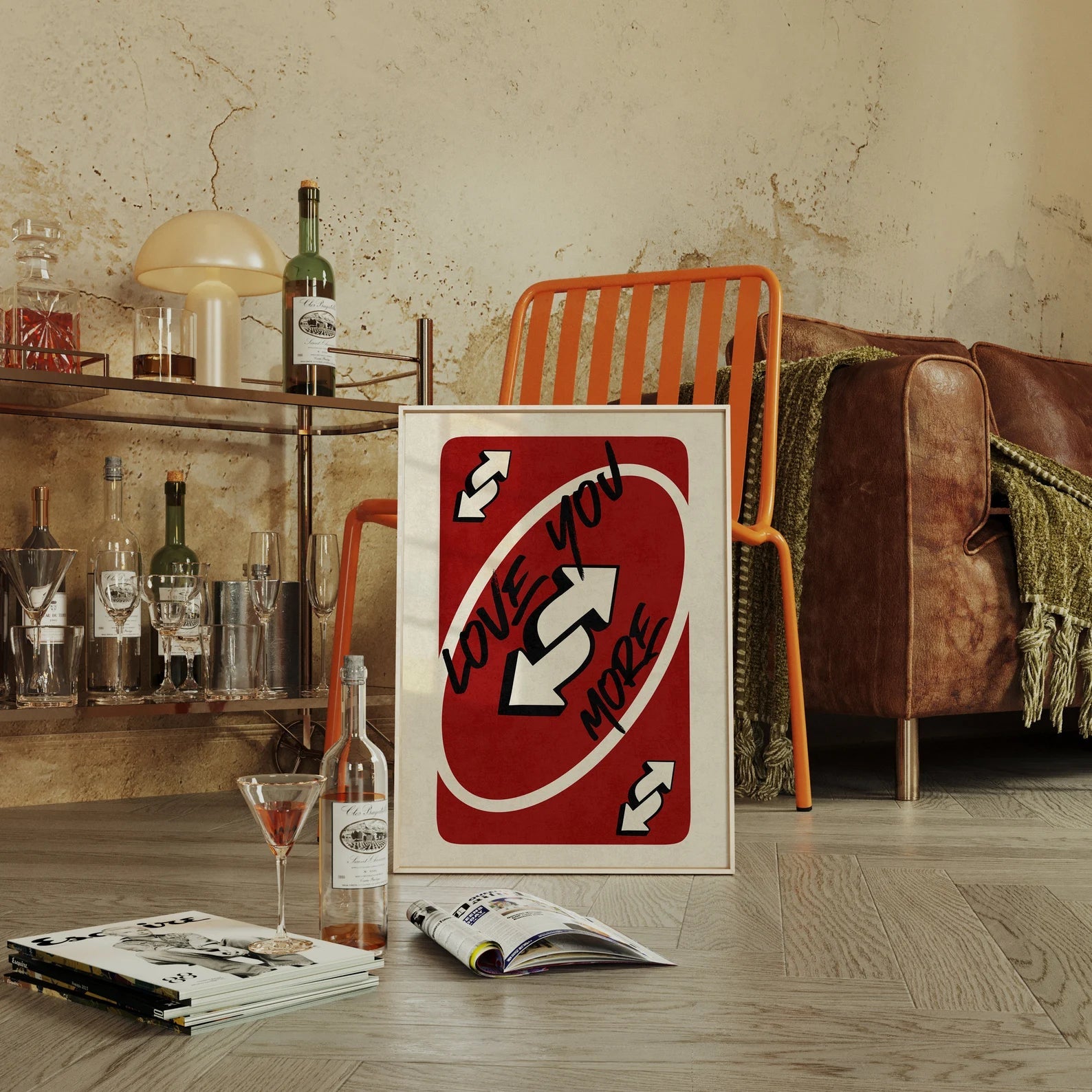 Gør dit hjem personligt med den unikke Reverse I Love You More Plakat. Plakaten kombinerer et minimalistisk design med et rørende budskab, hvor teksten er spejlvendt for et ekstra visuelt twist. Ideel som en kærlig påmindelse i soveværelset eller stuen og perfekt til en moderne indretning, der værdsætter enkelhed og dybde