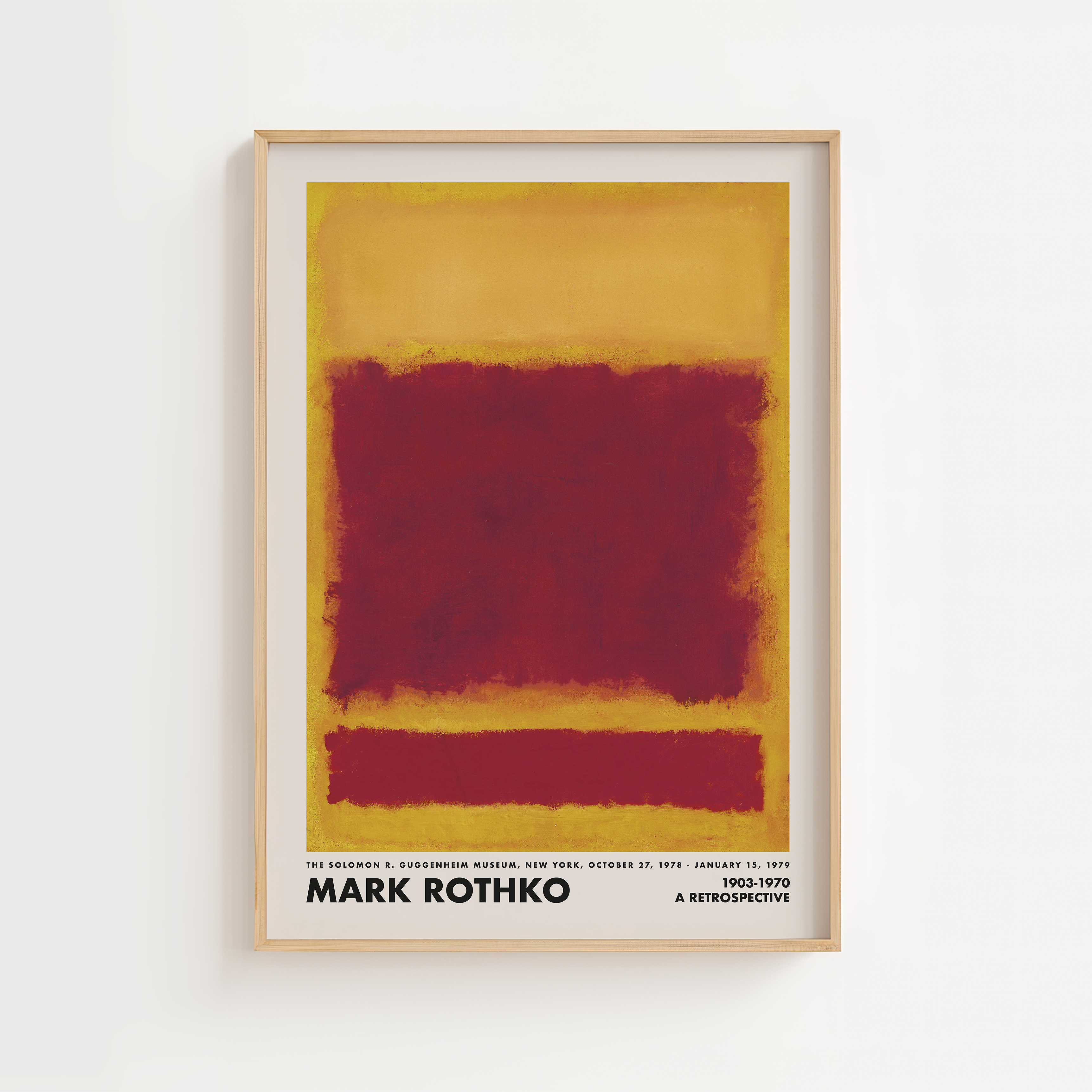 Giv din bolig et stærkt kunstnerisk udtryk med No.304 – Mark Rothko Plakat. Motivet kombinerer intense røde felter med varme, gyldne nuancer, som skaber en dyb og samtidig rolig stemning i rummet. Den abstrakte komposition er karakteristisk for Rothkos udtryk og passer perfekt ind i moderne indretning, hvor farver og kunst fungerer som bæredygtige statements.