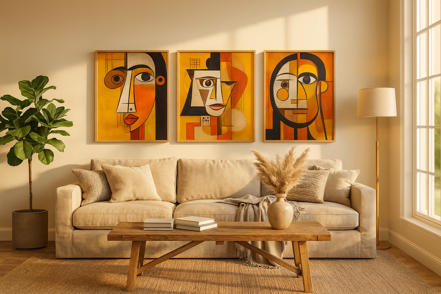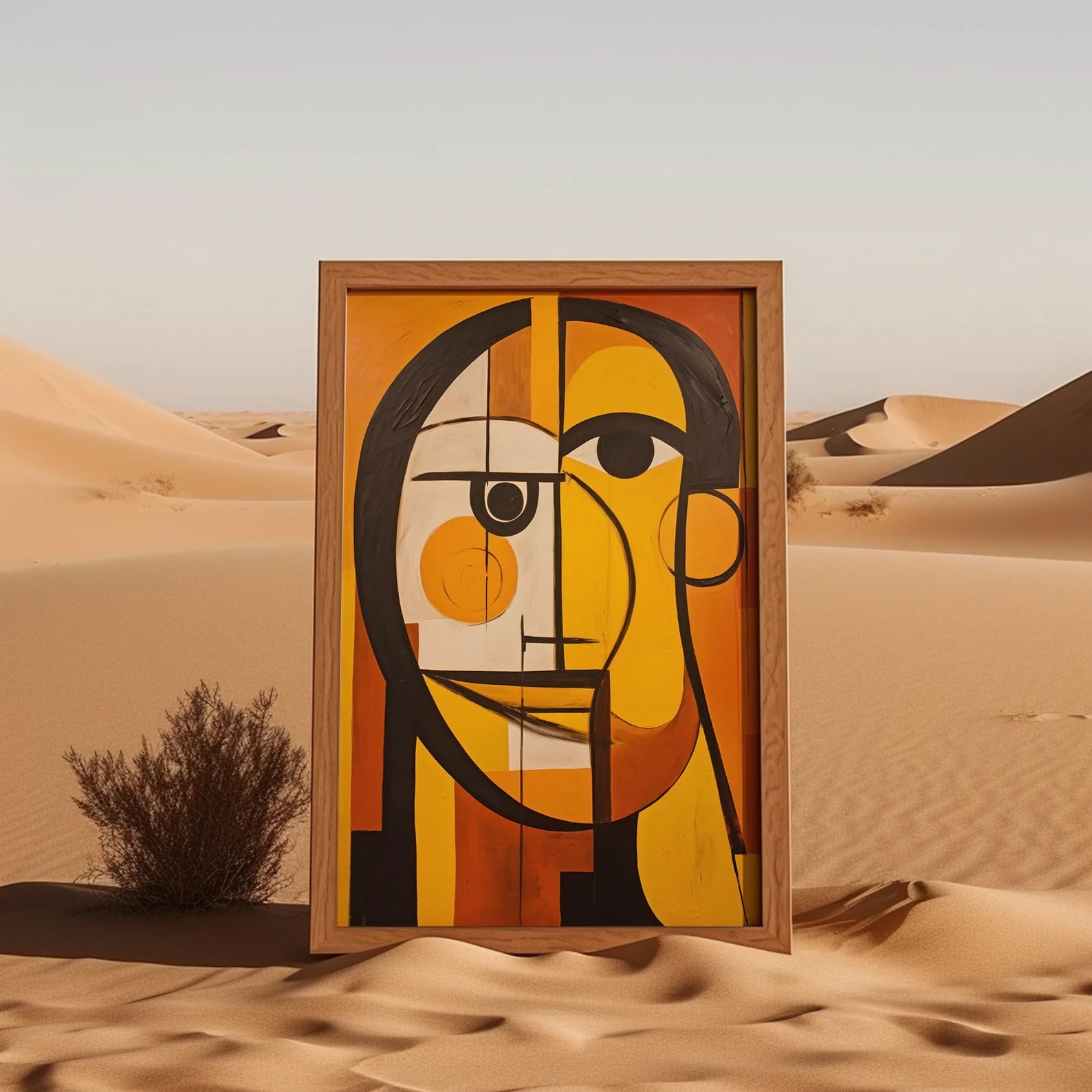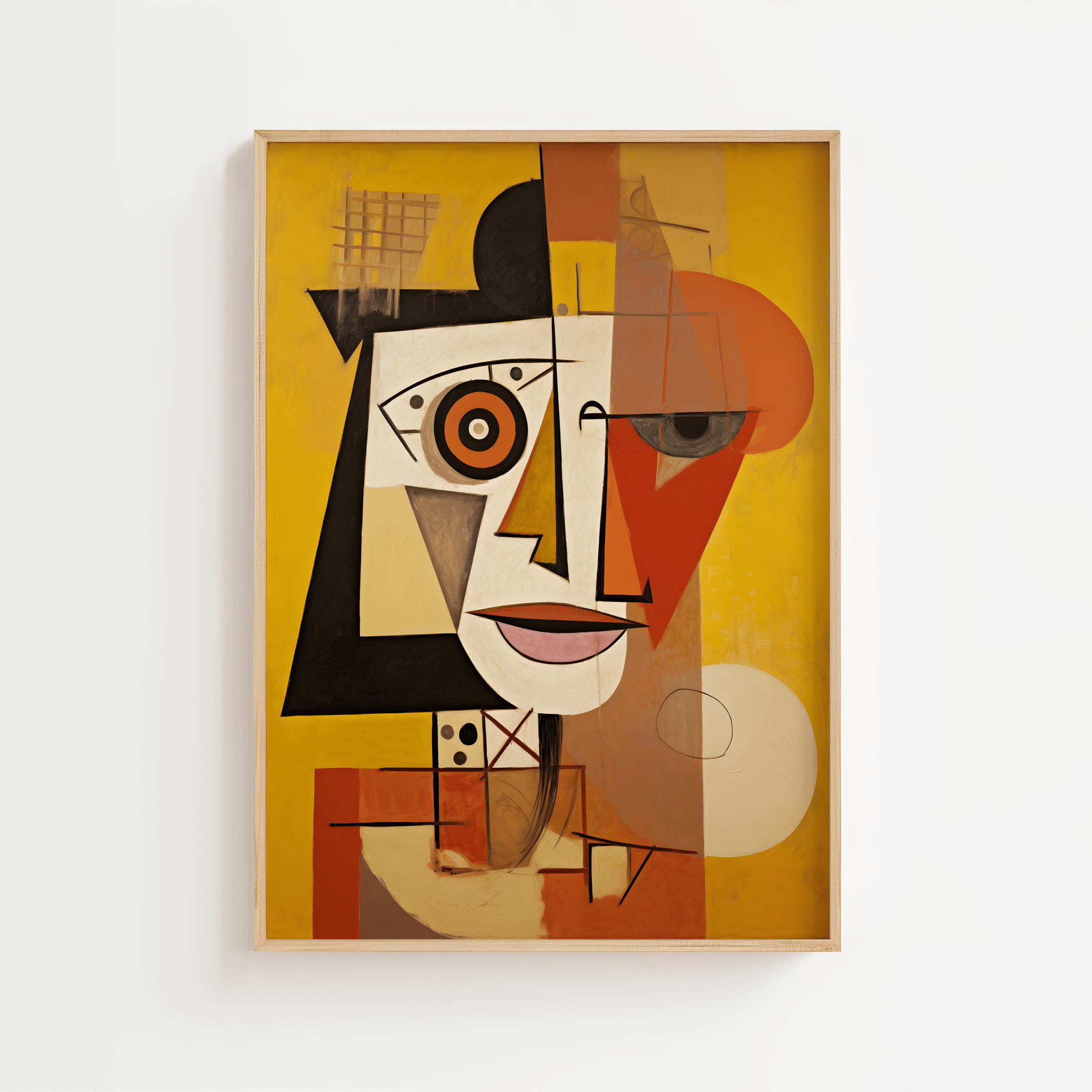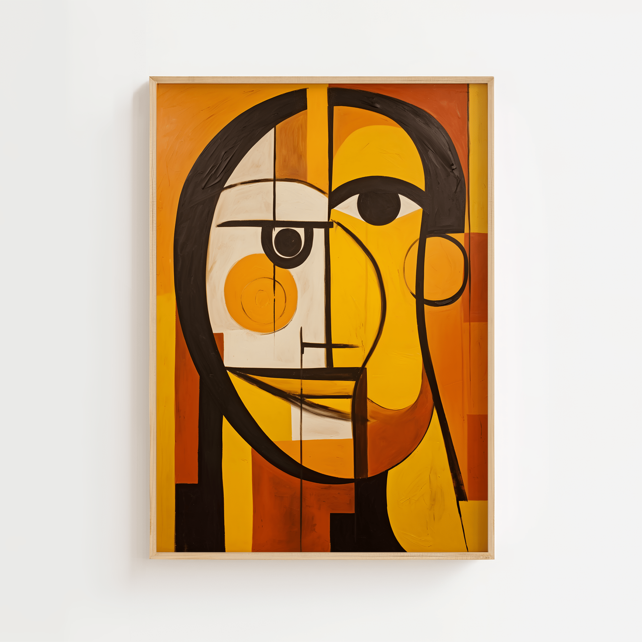 Plakatserien er inspireret af Picassos ikoniske kubistiske stil og består af tre smukke portrætter i varme gule, orange og jordnære nuancer. Sammen skaber de et moderne, kreativt og elegant udtryk, der passer perfekt til stuen, entreen, hjemmekontoret eller en kunstnerisk billedvæg.