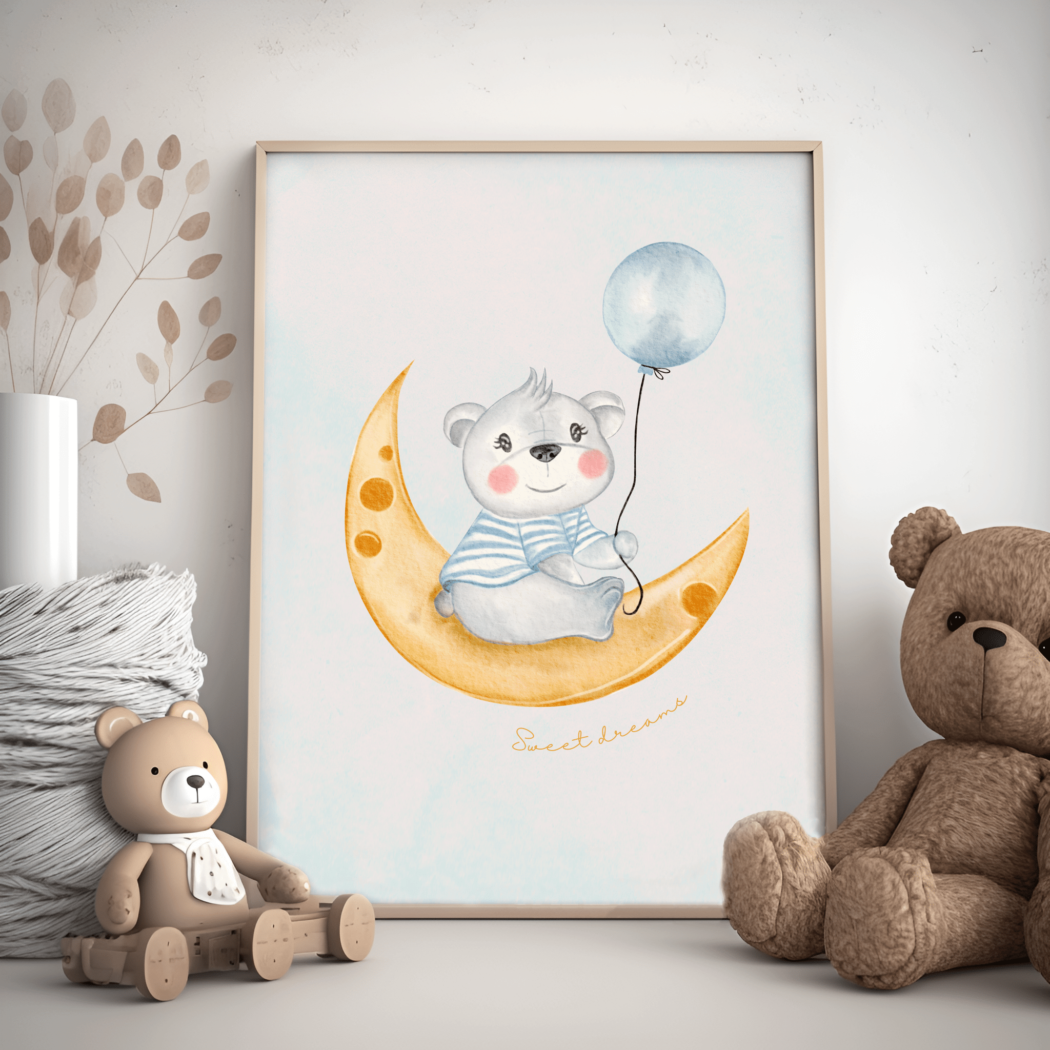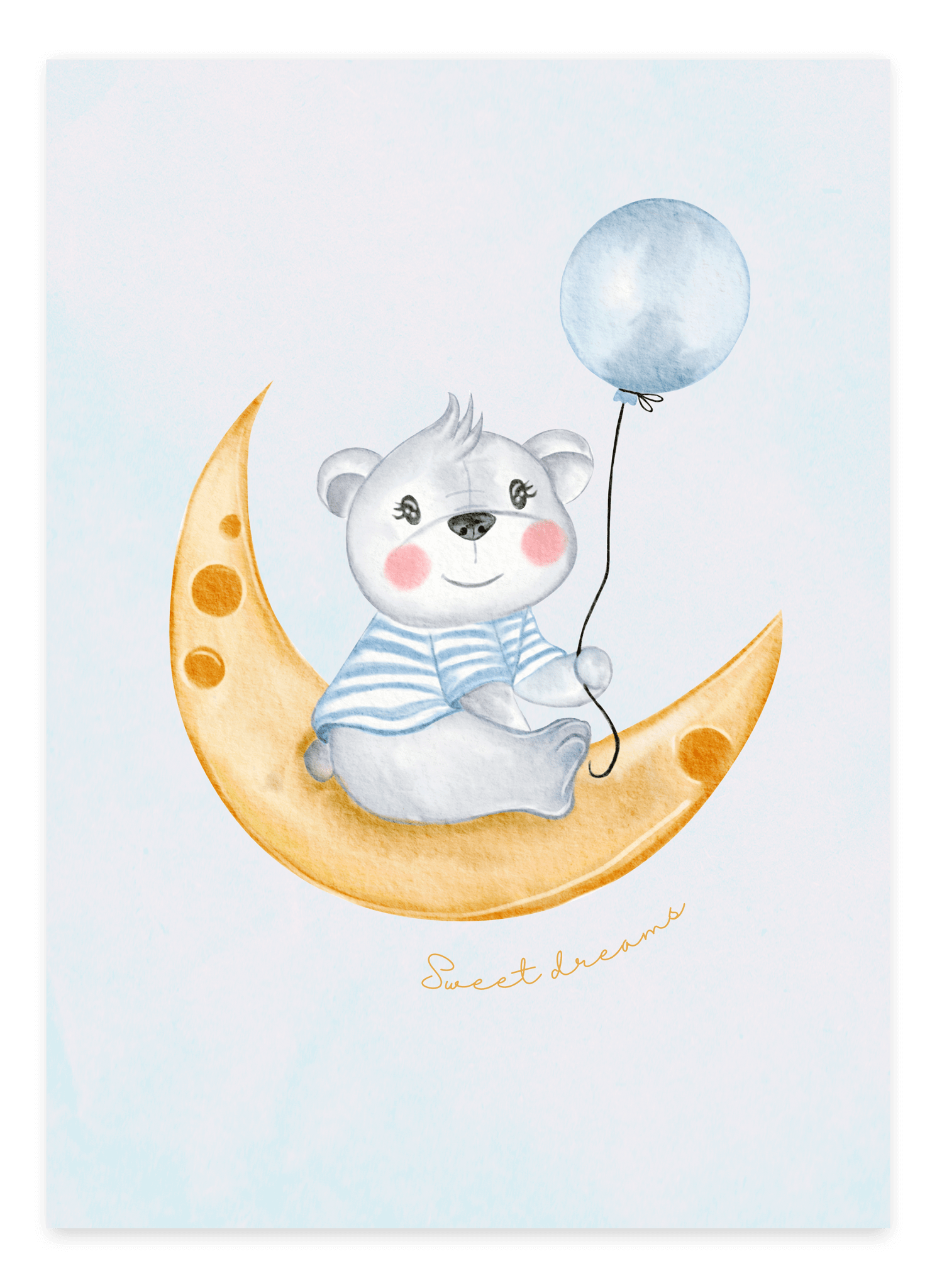 Plakaten passer perfekt over sengen eller i en billedvæg med andre drømmende motiver. Trykt på kvalitetsmateriale, der sikrer flotte farver og fine detaljer, er Sweet Dreams - Børneplakat en smuk tilføjelse til ethvert børneværelse.