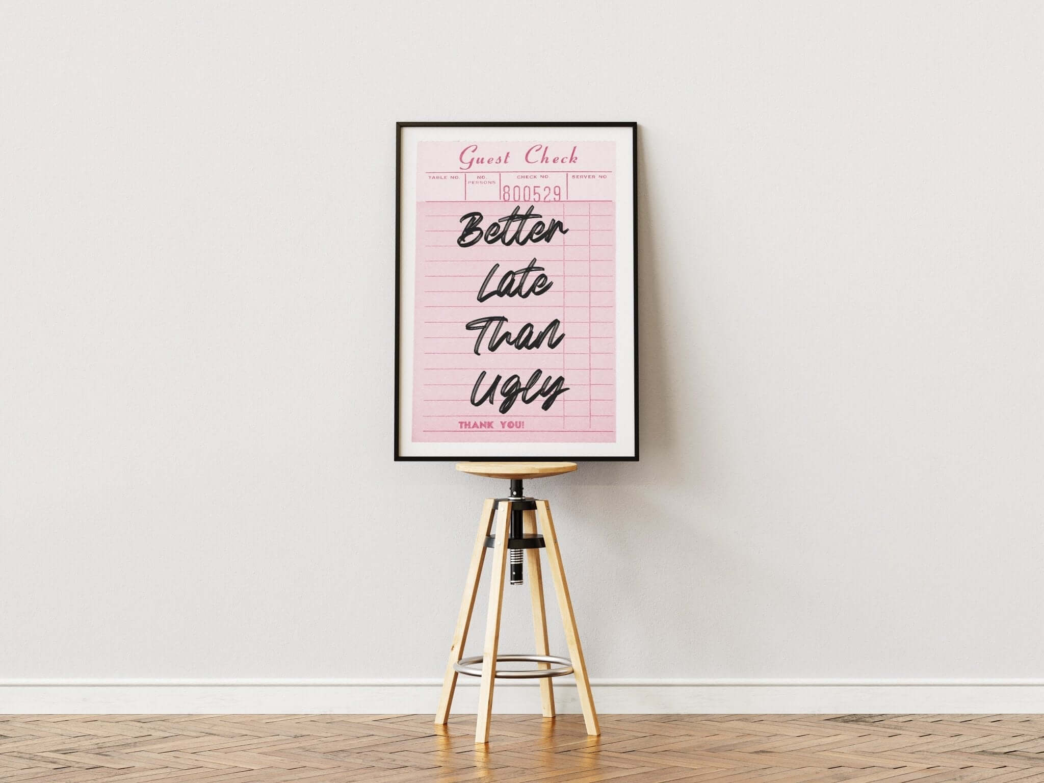 Bring et smil på læben med Better Late Than Ugly Plakat – den perfekte citat plakat til dig, der hellere vil komme lidt for sent end at gå ud uden at se godt ud! Med sit minimalistiske og stilrene design passer denne plakat perfekt ind i ethvert rum, uanset om det er badeværelset, soveværelset eller et kreativt hjørne.
