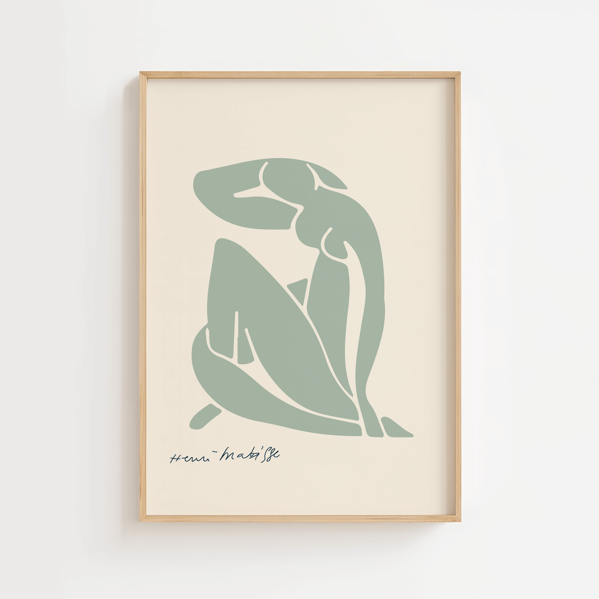 H. Madame – Matisse Plakat er en rolig og elegant kunstplakat inspireret af Henri Matisse’s ikoniske linjekunst og figurative motiver. Den grønne kvindesilhuet skaber en følelse af natur, balance og styrke – et kunstværk, der tilfører rummet et harmonisk og kunstnerisk præg.