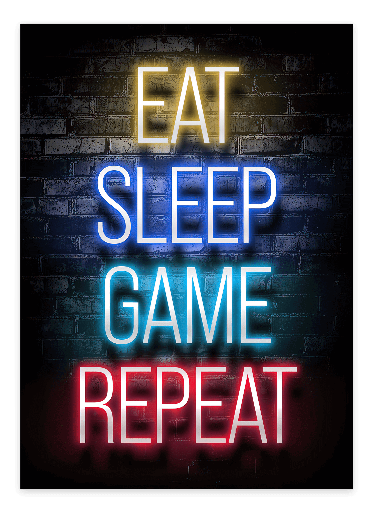 Bestil din Eat, Sleep, Game, Repeat - Gaming Plakat i dag og vis din passion for gaming!