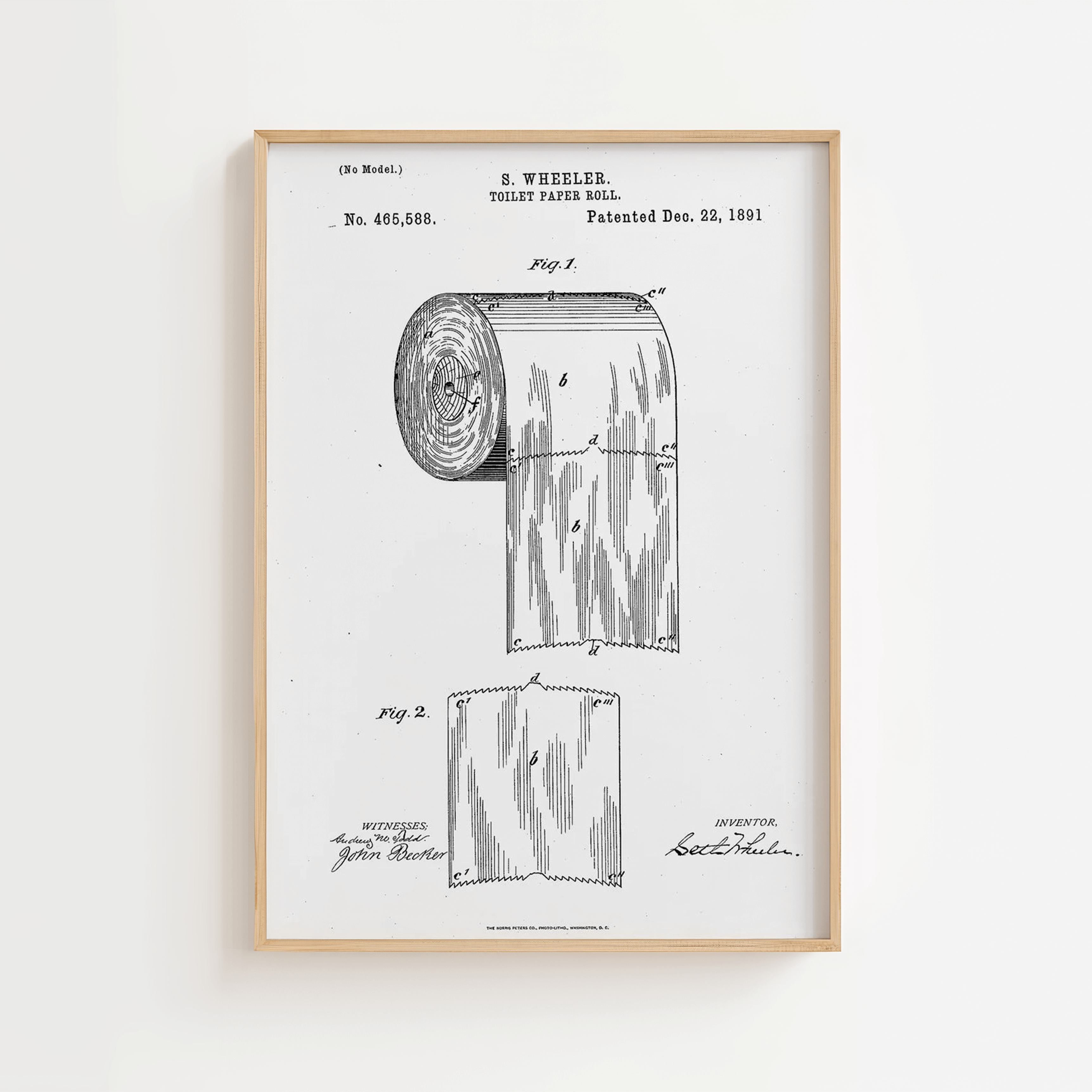 Denne retroinspirerede plakat viser det originale patent på toiletpapirrullen, dateret helt tilbage til 1891. Med sit enkle sort-hvide design og tekniske charme er plakaten både sjov og stilfuld – perfekt til badeværelset, gæstetoilettet eller som gaveidé til den, der sætter pris på detaljer med kant og humor. Et perfekt miks af vintage æstetik og moderne indretning.