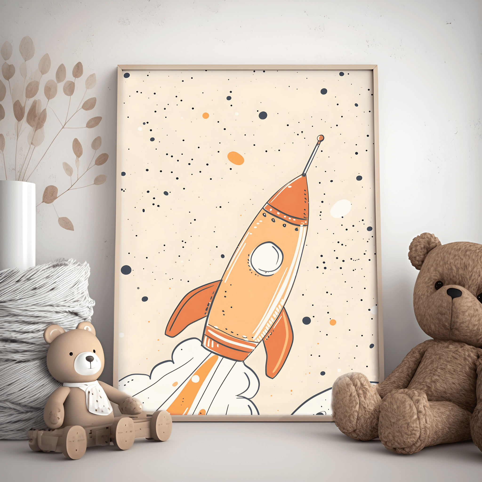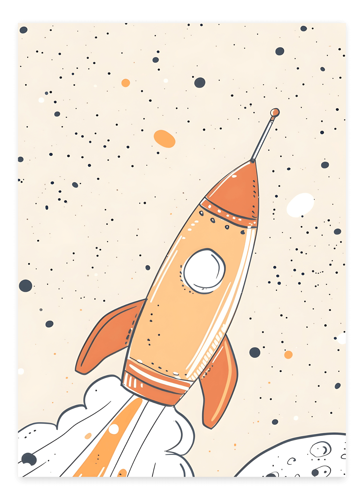 Lad dit barn drømme sig ud i rummet med Raket til Månen - Børneplakat! Denne fantasifulde børneplakat viser en farverig raket, der svæver op mod månen, klar til nye eventyr. Perfekt til små opdagelsesrejsende, der elsker rummet og uendelige muligheder.