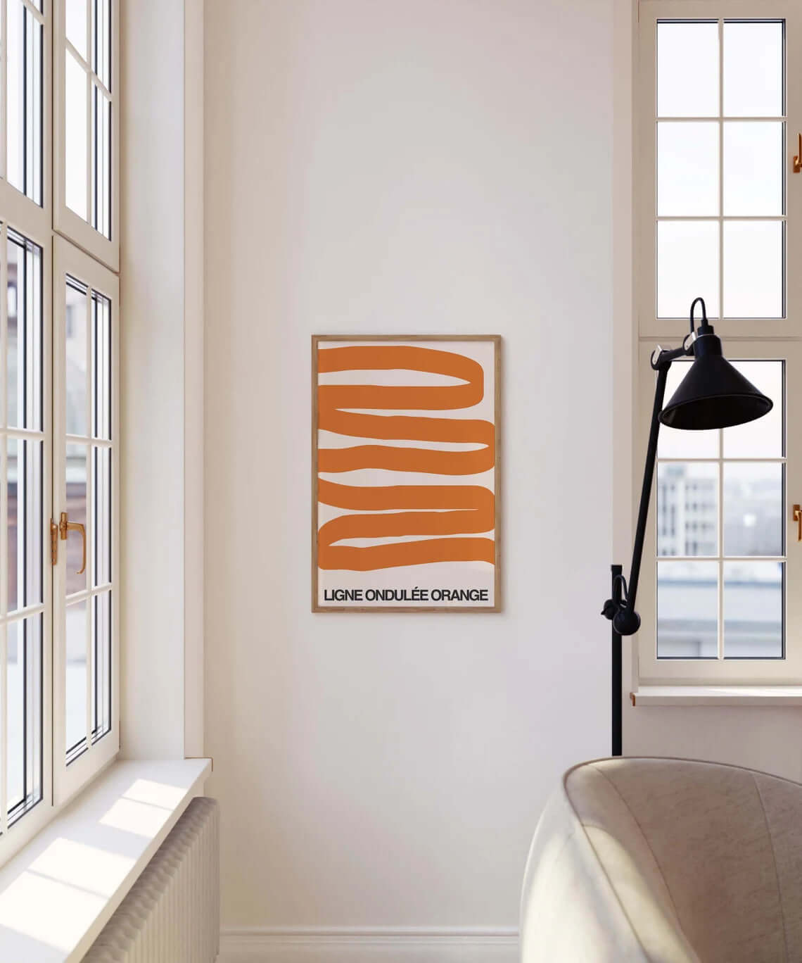 Orange Bølgende Former Plakat er et grafisk og stilrent kunsttryk med bløde, organiske former i varme orange nuancer. De flydende linjer giver plakaten et levende, men roligt udtryk, der tilfører personlighed og varme til rummet.
