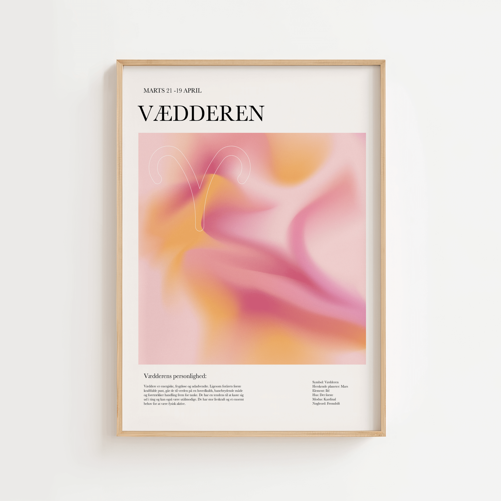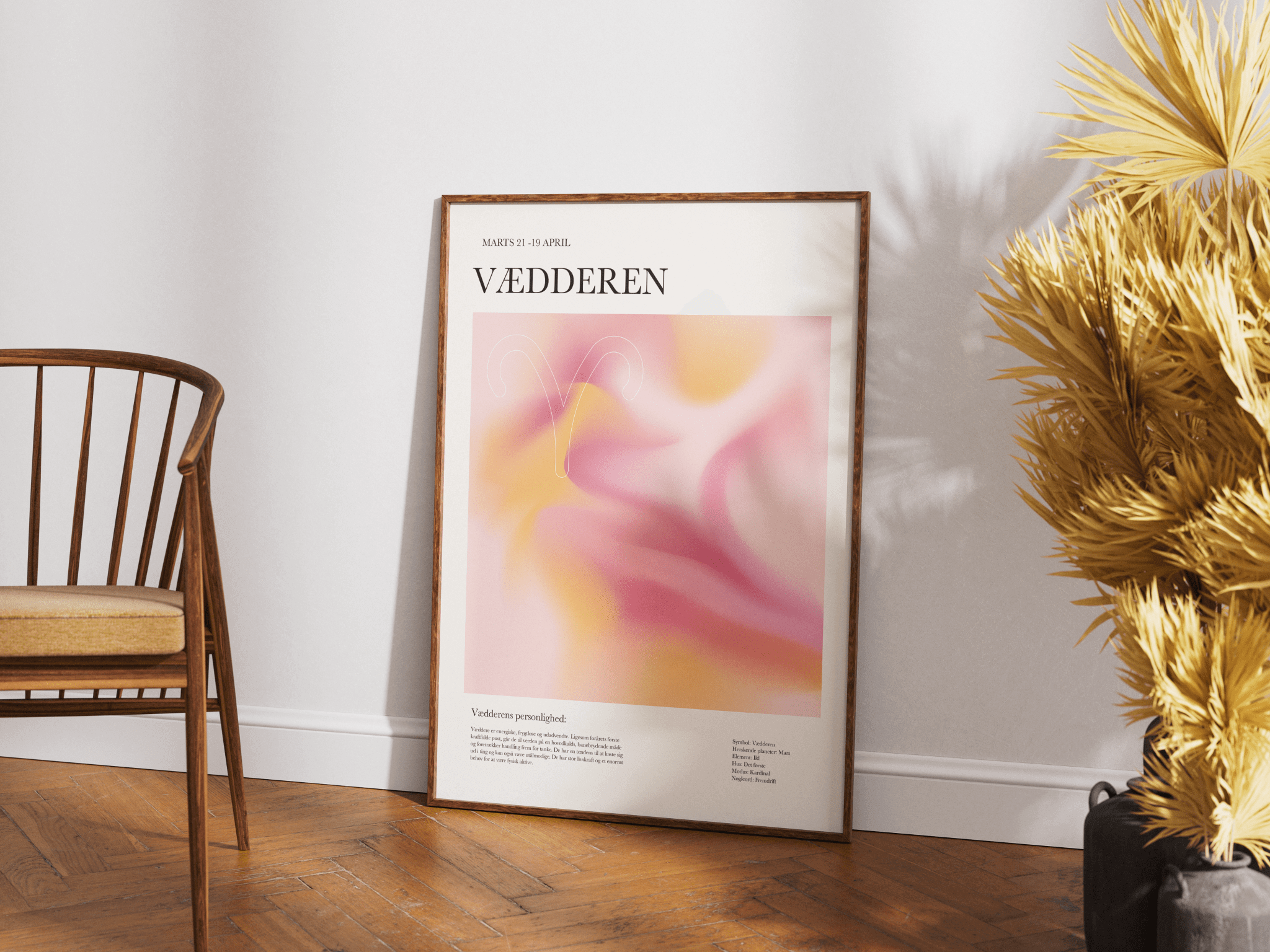 Denne stjernetegns plakat med vædderen er skabt til dig, der elsker mod, energi og initiativ. Vædderen er det første tegn i zodiakken og symboliserer en stærk vilje og pionerånd. Det farverige design hylder netop disse egenskaber og gør plakaten til et levende og personligt element i din indretning.