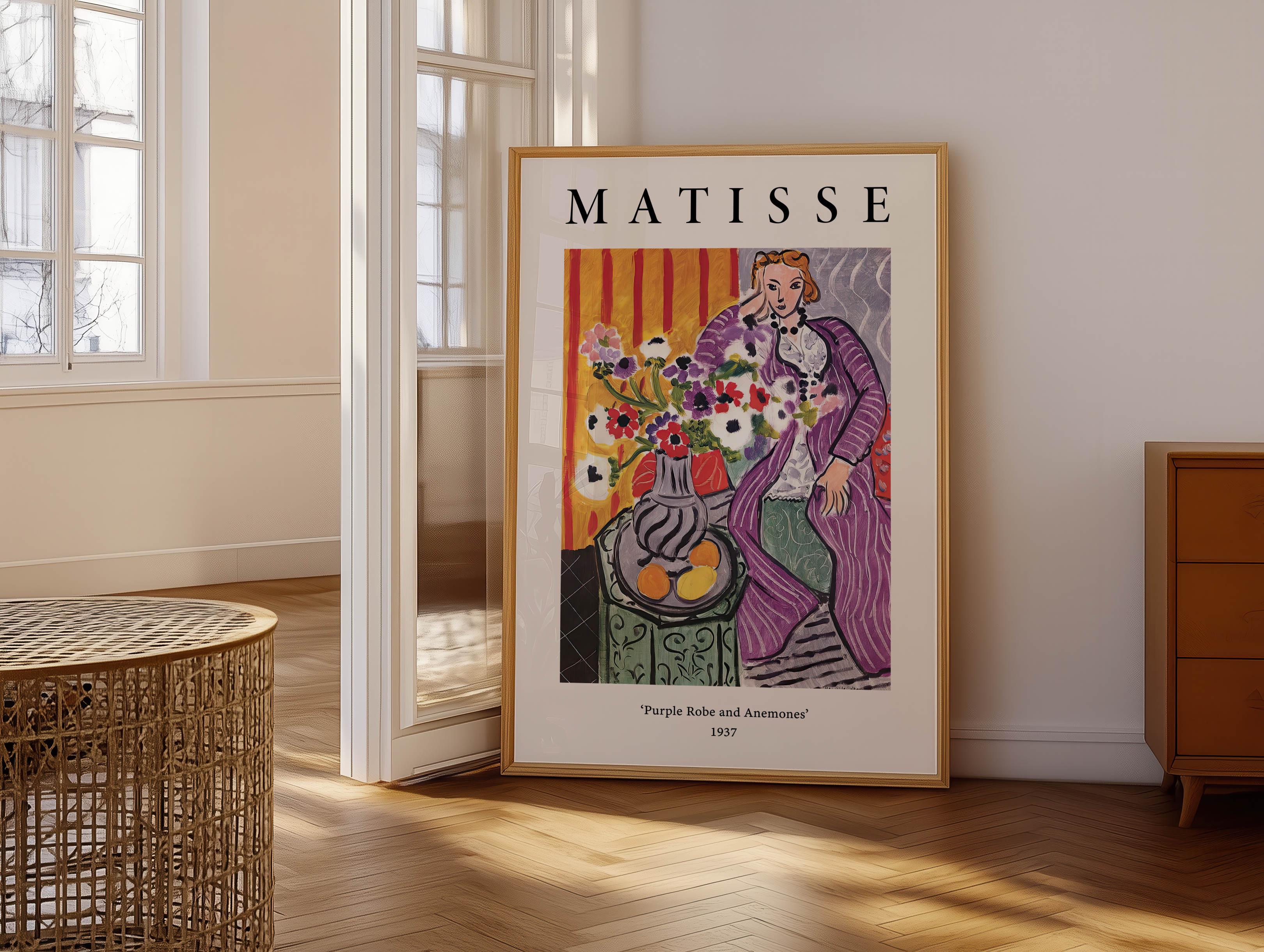 Tilføj et ikonisk og farverigt kunstværk til dit hjem med Purple Robe and Anemones – Matisse Plakat.