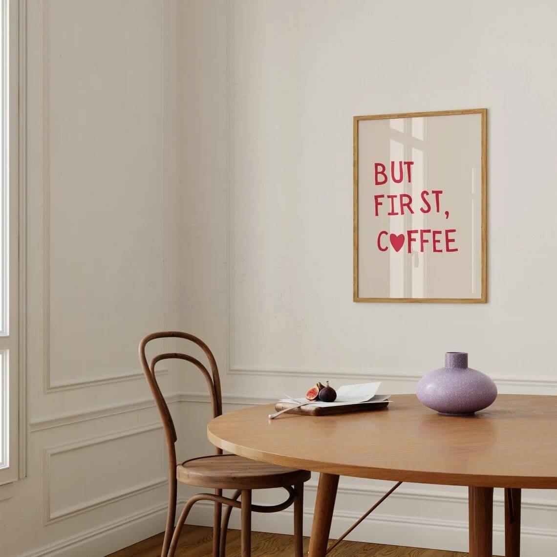 Vores But first Coffee Plakat er skabt til alle kaffeelskere, der ved, at den første prioritet hver dag er en god kop kaffe. Med sit moderne design og iøjnefaldende typografi sender den et sjovt, men stærkt budskab: først kaffe, så alt andet. Plakaten fungerer som en påmindelse om at nyde øjeblikket og starte dagen med energi og inspiration. Den passer perfekt ind i ethvert køkken, stue eller kontor, hvor den kan være med til at sætte et personligt og humoristisk præg. Fås i flere størrelser og trykt på kvalitetsmateriale – klar til at bringe et frisk pust af kaffeinspiration ind i dit hjem
