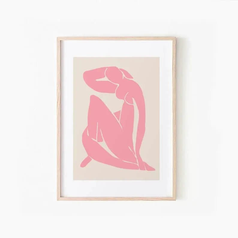 Pink Madame – Matisse Plakat er en elegant og udtryksfuld kunstplakat, inspireret af Henri Matisse’s ikoniske stregtegninger og sans for form. Motivet viser en stiliseret kvindeskikkelse i en smuk rosa farve, der tilføjer både varme og karakter til rummet.