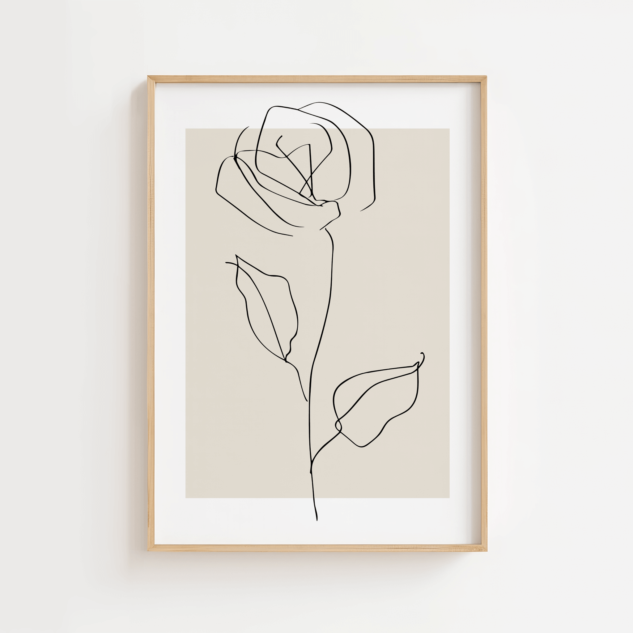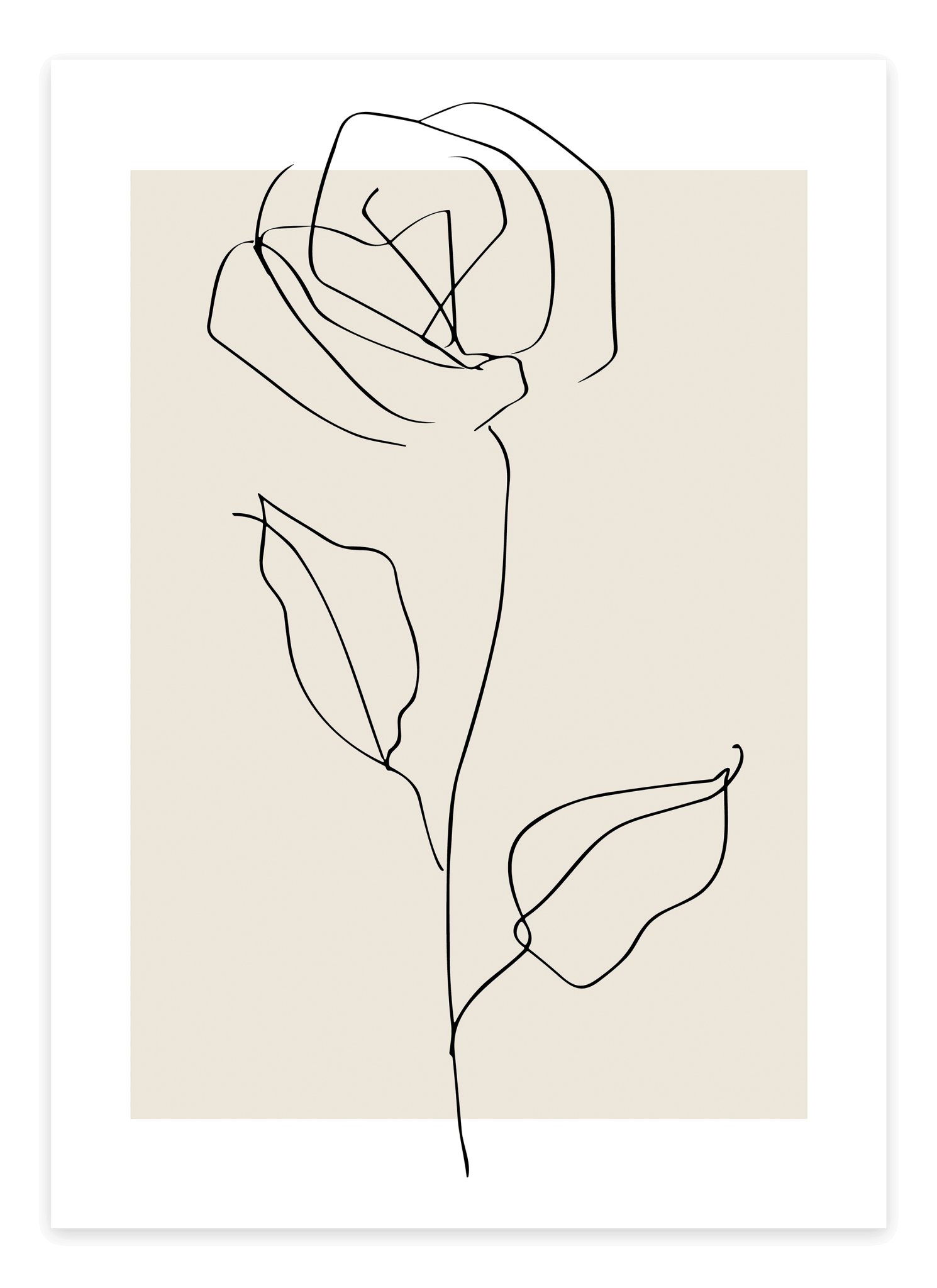 Opgrader din indretning med Botanisk Rose Plakat i fine line stil og beige nuancer. Denne abstrakte plakat er ideel til stuen, hvor den skaber en rolig og elegant stemning. En tidløs vægdekoration, der kombinerer moderne kunst og klassisk æstetik, perfekt til hjemmets hjerte