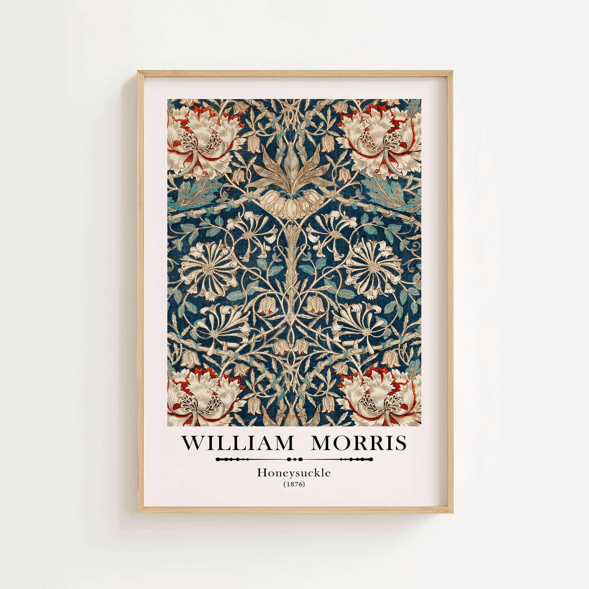 Opdag den tidløse skønhed i William Morris' "Honeysuckle" plakat, der fanger essensen af ​​natur og blomsterliv. Med sit elegante mønster bringer denne plakat en følelse af ro og harmoni til ethvert rum.