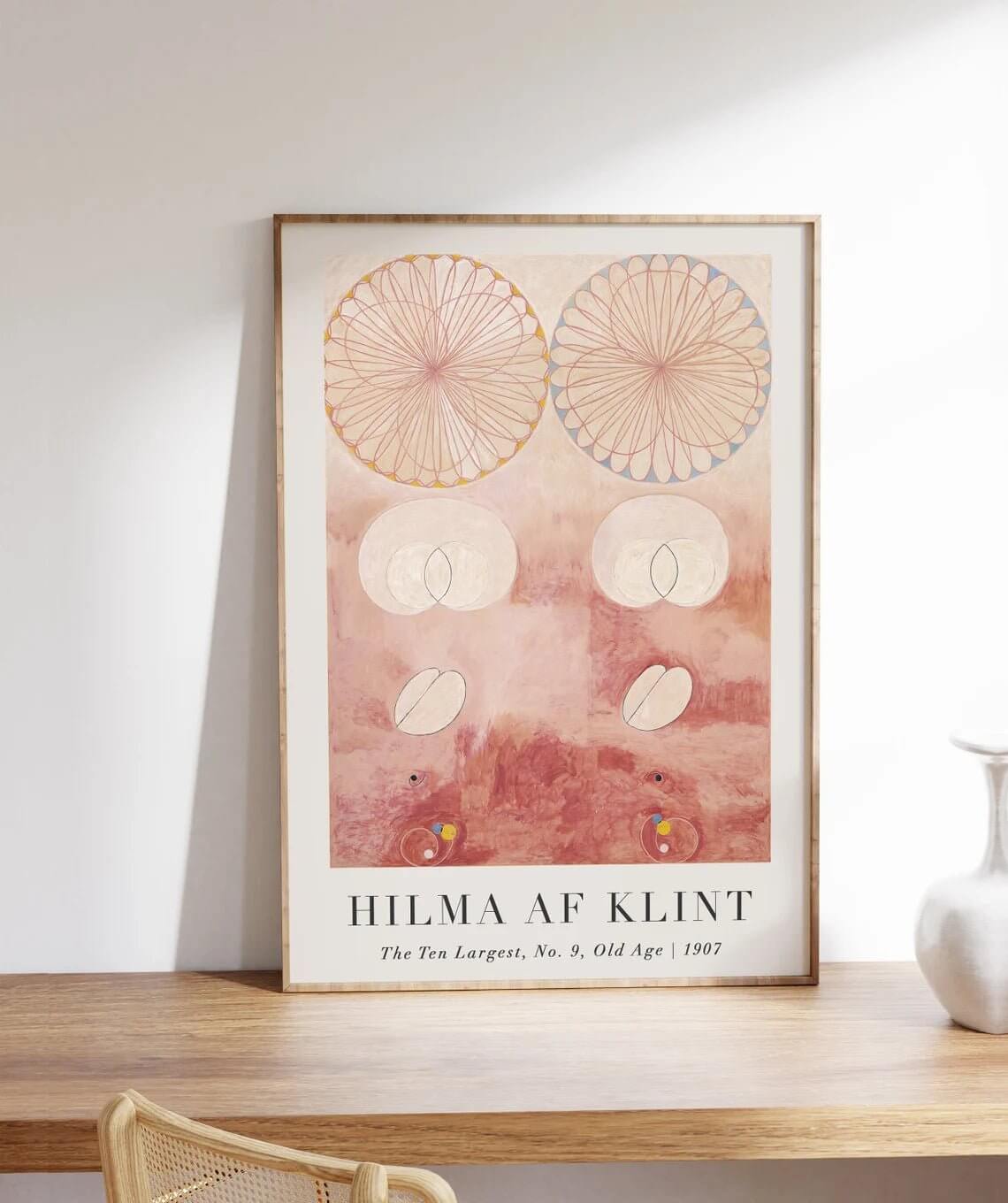 Dyk ned i Hilma af Klints fascinerende univers med Old Age Plakat, et værk fyldt med abstrakte former og spirituelle symboler. Som en del af hendes visionære kunstneriske rejse udforsker dette kunstværk livets cyklus gennem farver og geometri. Plakaten bringer en særlig dybde til din indretning, perfekt til dem, der værdsætter kunst med mening.