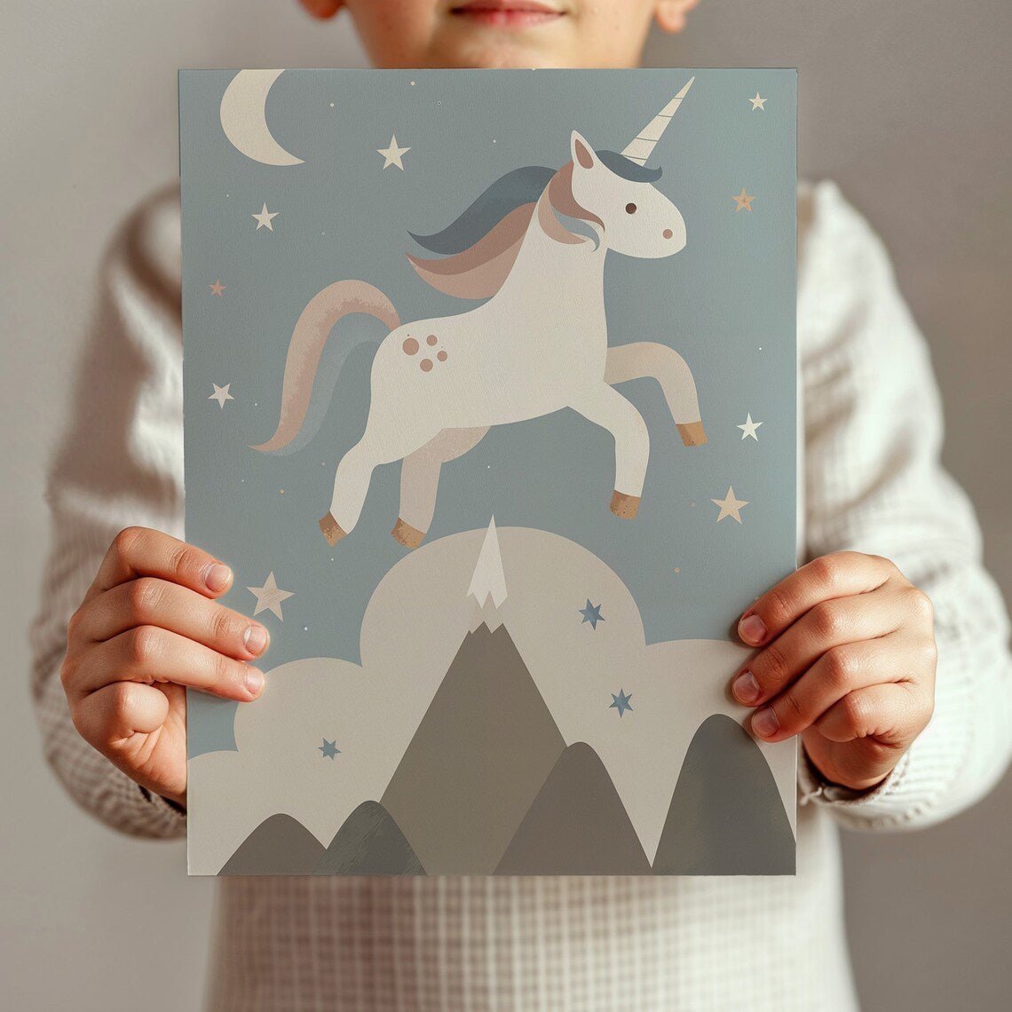 Enhjørning Børneplakaten er en fantastisk og fantasifuld plakat, der bringer magi og eventyr ind i børneværelset. Med en smuk og farverig illustration af en enhjørning i et drømmende landskab, er denne plakat ideel til børn, der elsker magiske væsner og fantasi. Perfekt til at skabe en beroligende og inspirerende atmosfære, denne plakat er den ideelle gave til unge drømmere, der ønsker at blive omringet af eventyr og fantasi. Den vil hurtigt blive et yndlingsmotiv på væggen og tilføje et strejf af magi til ethvert børneværelse.