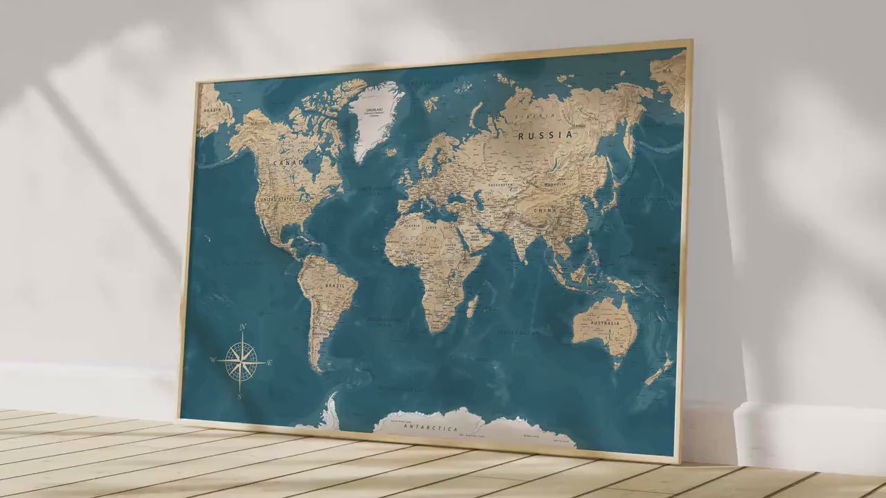 Realistisk Verdenskort Plakat giver dig et nøjagtigt og stilrent overblik over verdens kontinenter, lande og have. Med sit skarpe, detaljerede design er plakaten ideel til dig, der ønsker en kombination af funktionalitet og æstetik i boligindretningen.