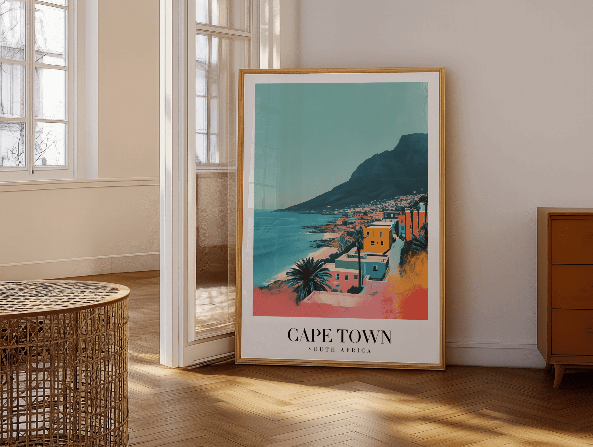En ideel rejseplakat for dig, der elsker eventyr og drømmer om Sydafrika. Den passer perfekt i stuen, soveværelset eller som en del af en billedvæg med andre byplakater fra hele verden.
