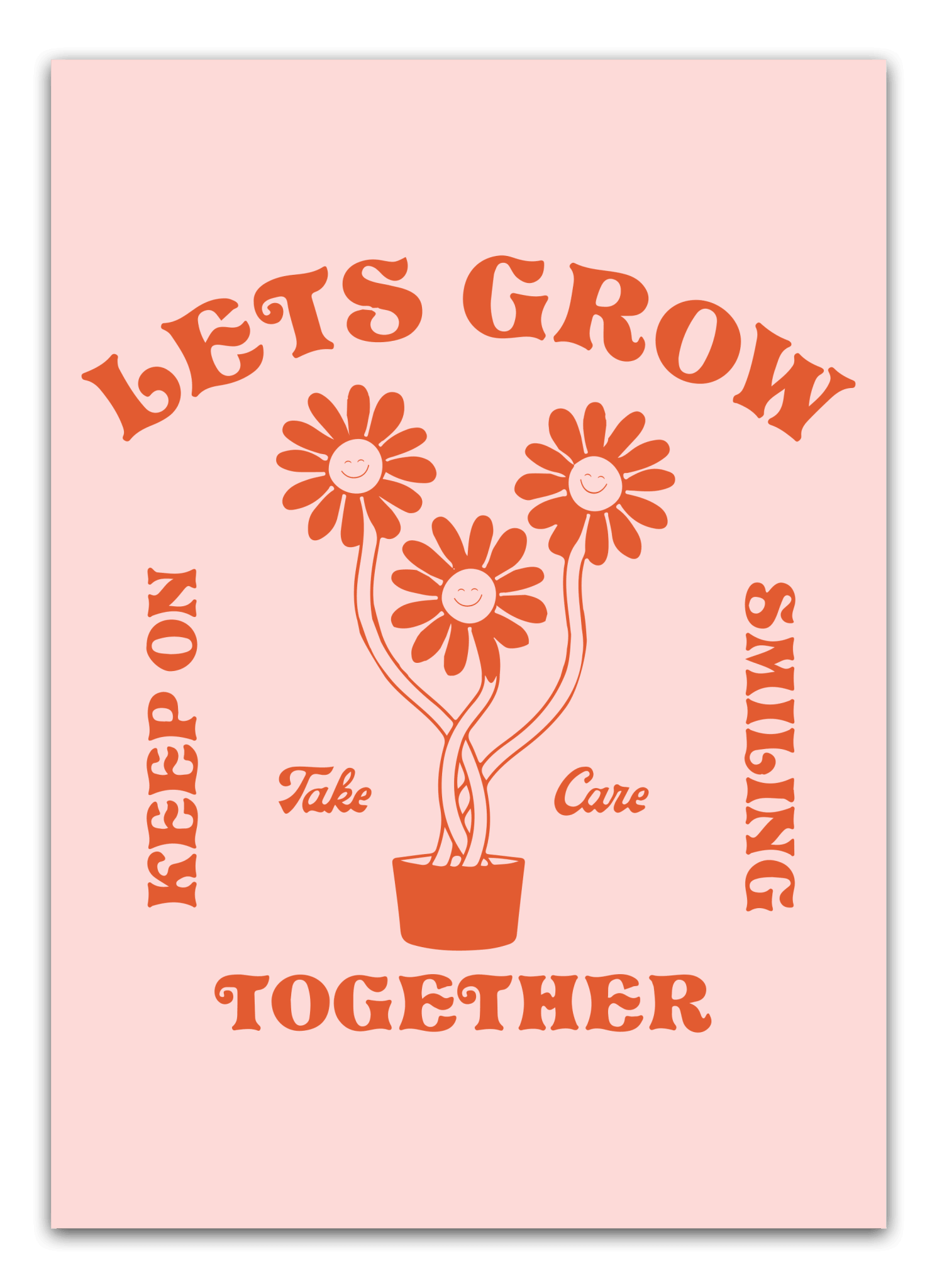 Find alt, hvad du har brug for, med vores inspirerende plakat: "Let's grow together - Keep Smiling" Lad dette citat minde dig om værdien af taknemmelighed og tilfredshed i livet. Vores plakater er skabt med fokus på æstetik og kvalitet og tilbyder en bred vifte af design, herunder vintage, retro, og citatplakater.