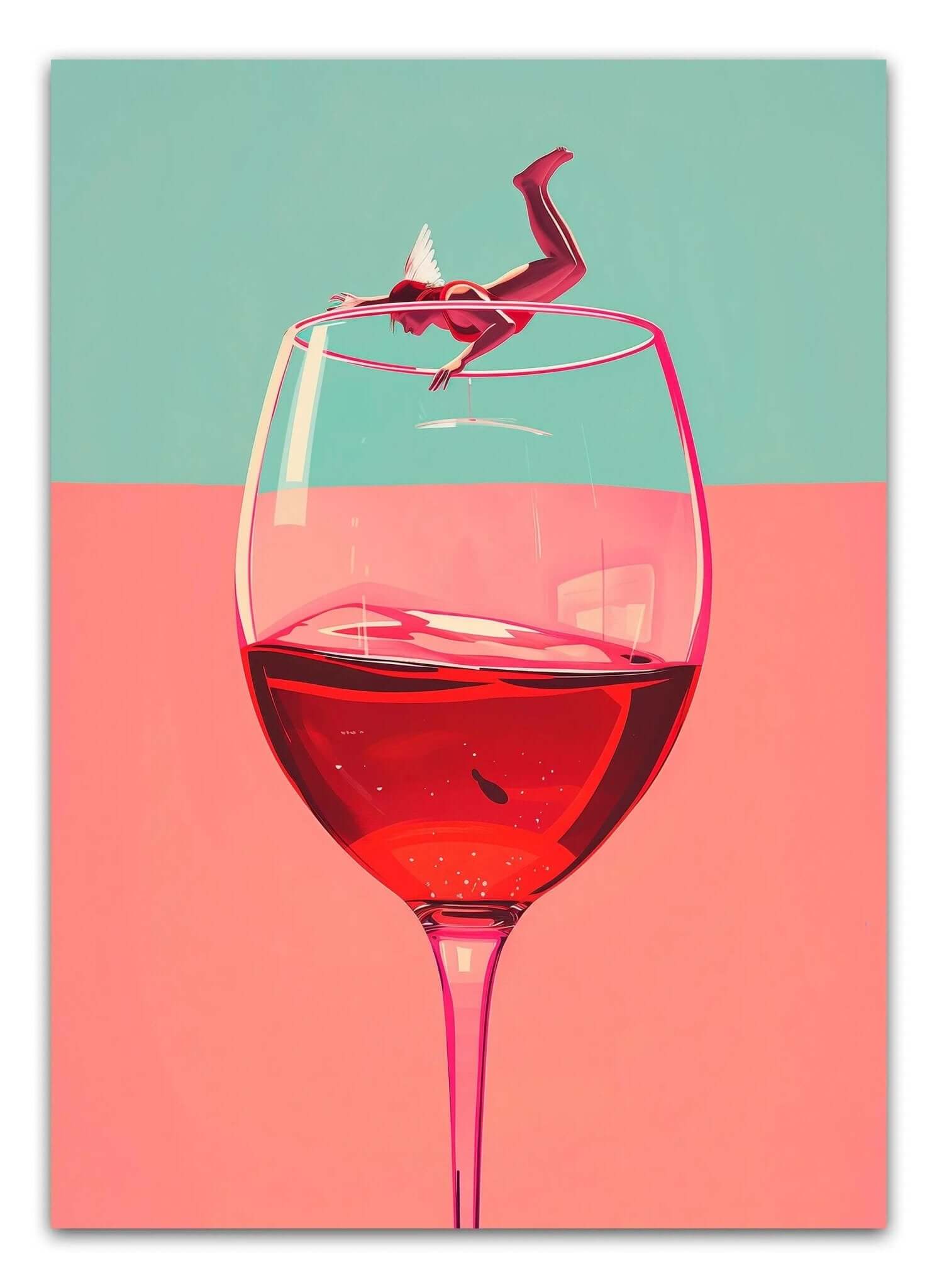 Bring en luftig og fortryllende stemning til dit rum med vores smukke 'Rosé Angel' plakat. Denne kunstneriske plakat fanger skønheden og elegance af en engel, der smyger sig omkring et glas forfriskende rosévin. Med subtile pastelfarver og delikate streger tilføjer denne plakat et strejf af himmelsk charme til ethvert hjem, bar eller café. Lad 'Rosé Angel' være det strålende centrum i din indretning og lad dine vægge fortælle historier om skønhed og nydelse.