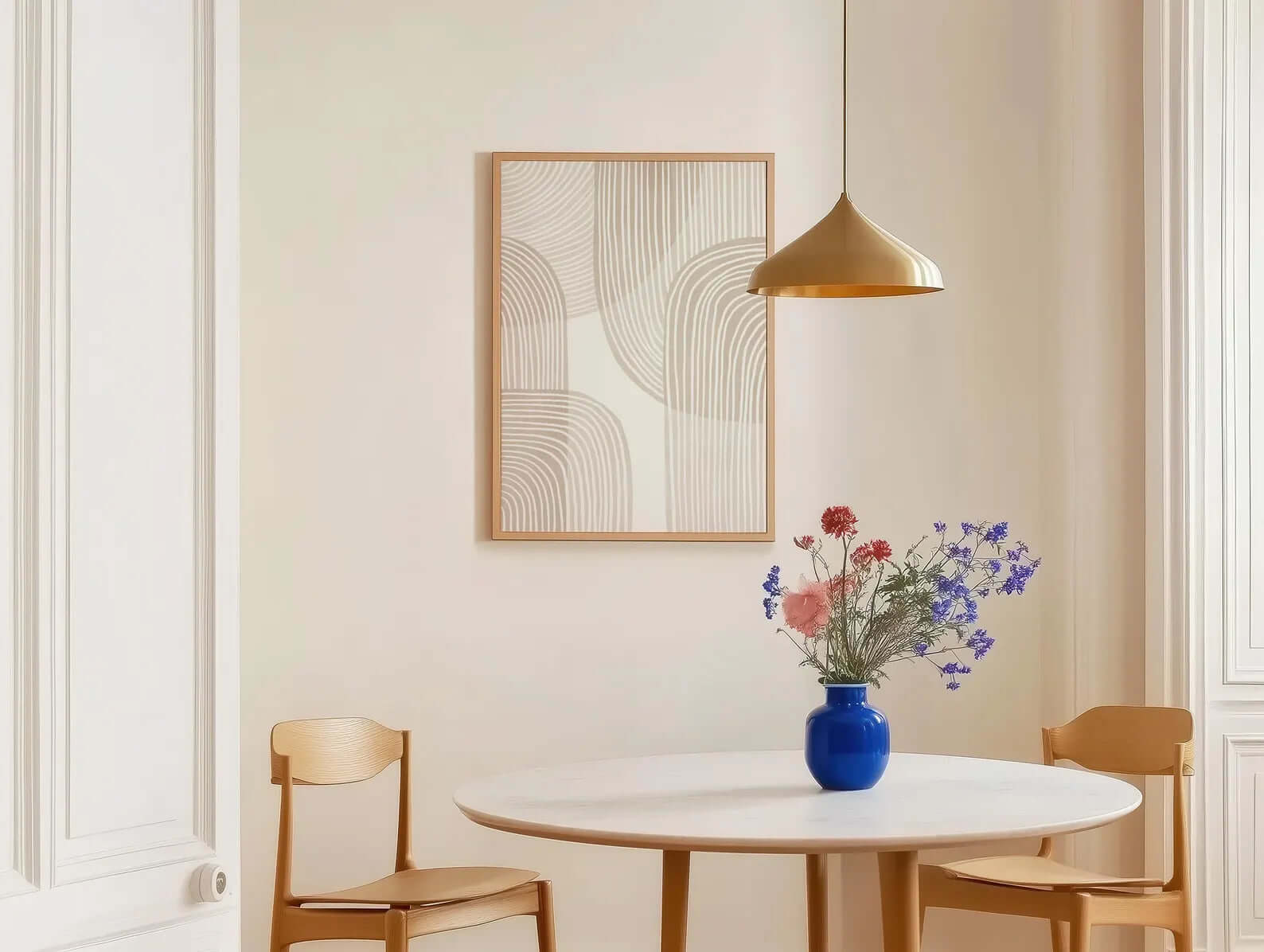 Plakaten er ideel til dig, der ønsker en rolig vægdekoration, som ikke tager over, men i stedet binder rummet sammen. De bløde former og gentagende linjer gør plakaten oplagt både alene og som en del af en billedvæg med andre moderne plakater.
