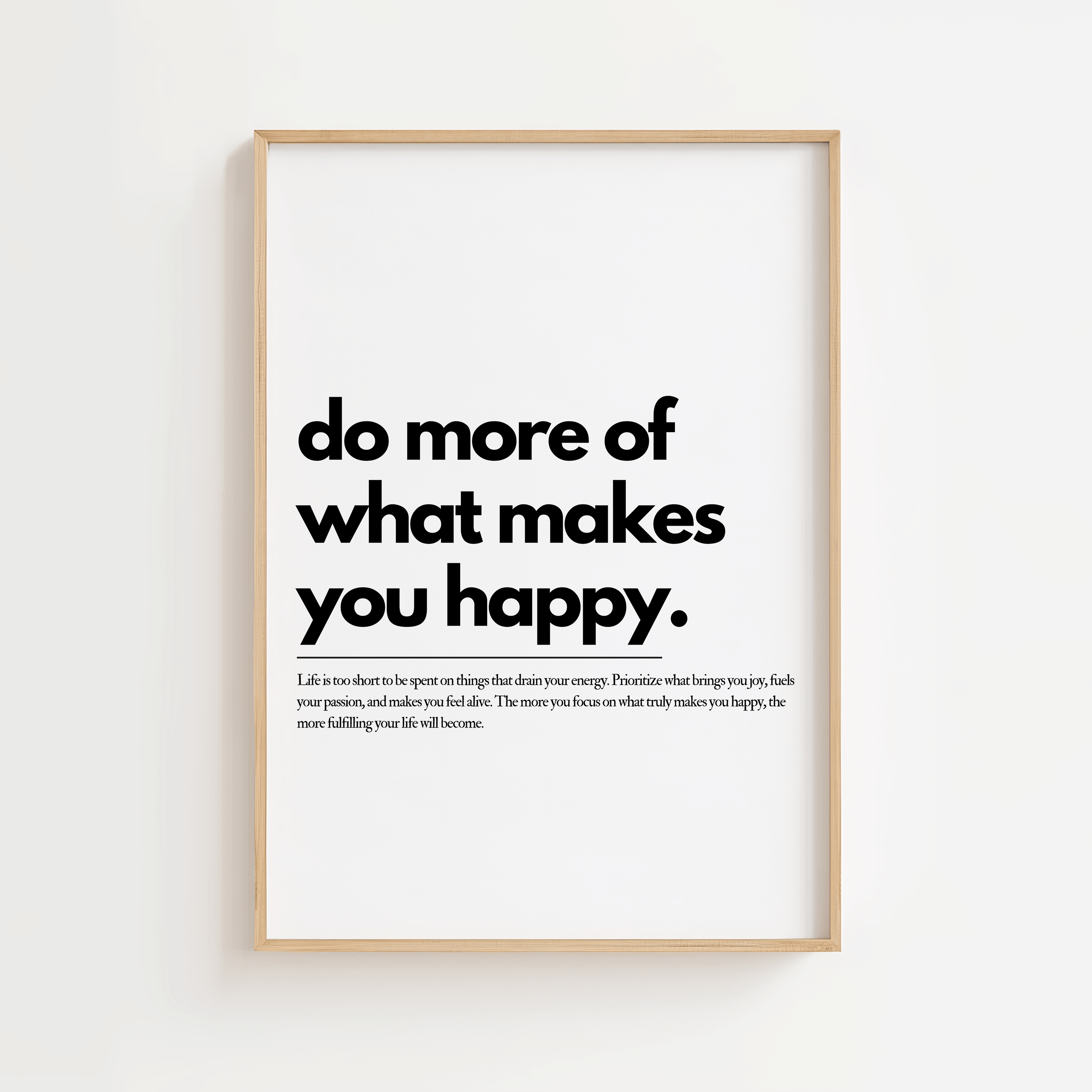 Denne inspirerende plakat med citatet “Do more of what makes you happy” minder dig om at prioritere det, der virkelig betyder noget i livet.